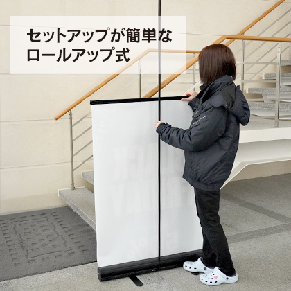 看板のサインパートナー > バナースタンド > ローコストロールスクリーン(850*2040)ブラック【セット】