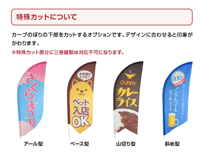 看板のサインパートナー > のぼり > ロングカーブのぼり(660×2600mm)【3mセット】ポンジ